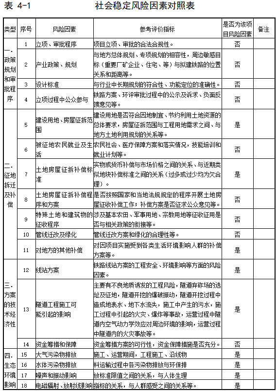 社會(huì)穩(wěn)定風(fēng)險(xiǎn)因素對(duì)照表。