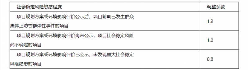 (2)社會穩定風險敏感程度調整系數
