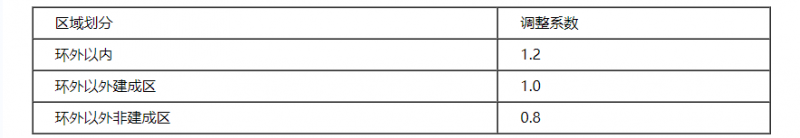 在上述收費標準的基礎上,根據項目所在區域所處地理位置以及是否為建成區劃分,按照下表的具體劃分標準乘以相應的調整系數,進行調整