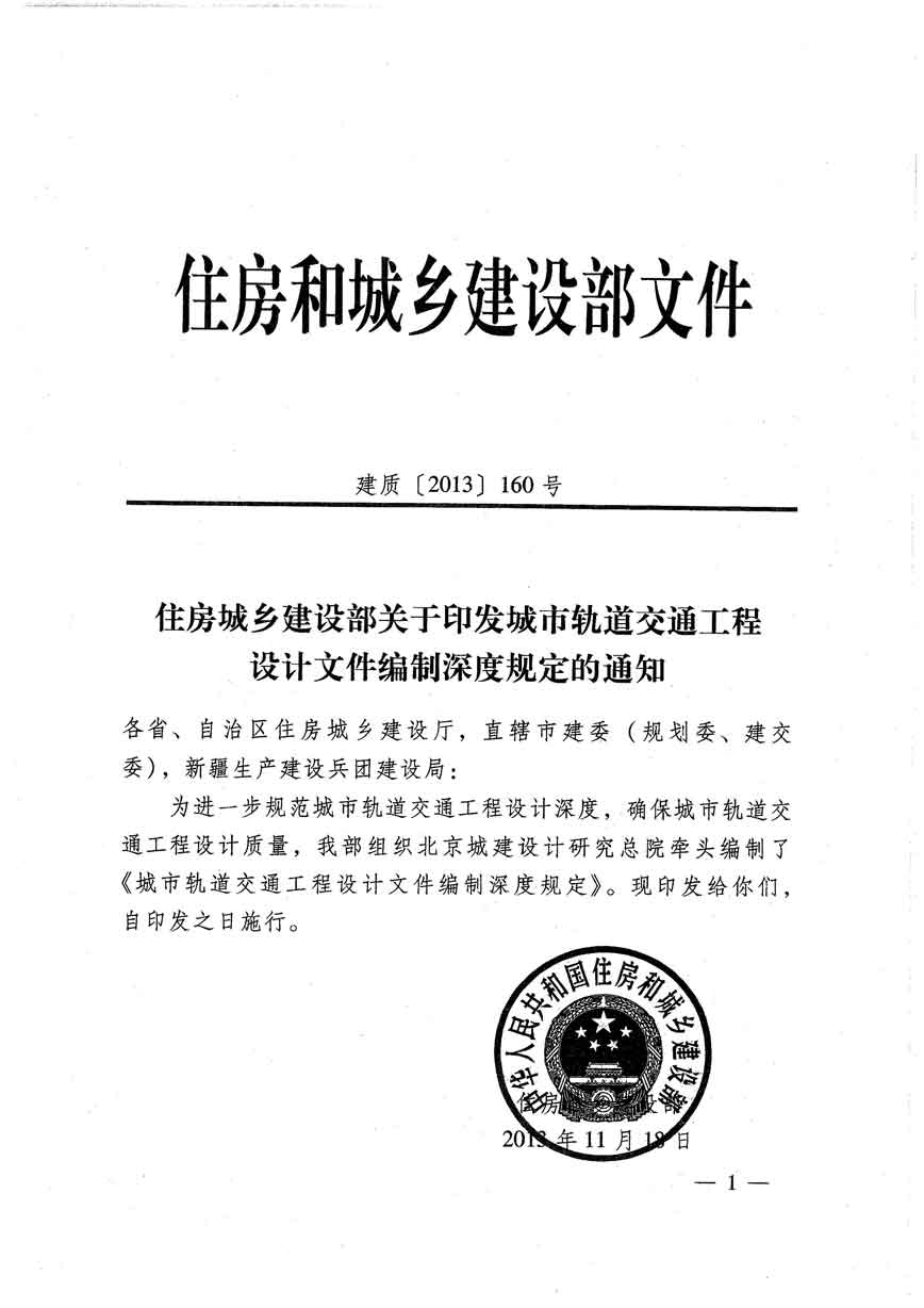 住房城鄉建設部關于印發城市軌道交通工程設計文件編制深度規定的通知