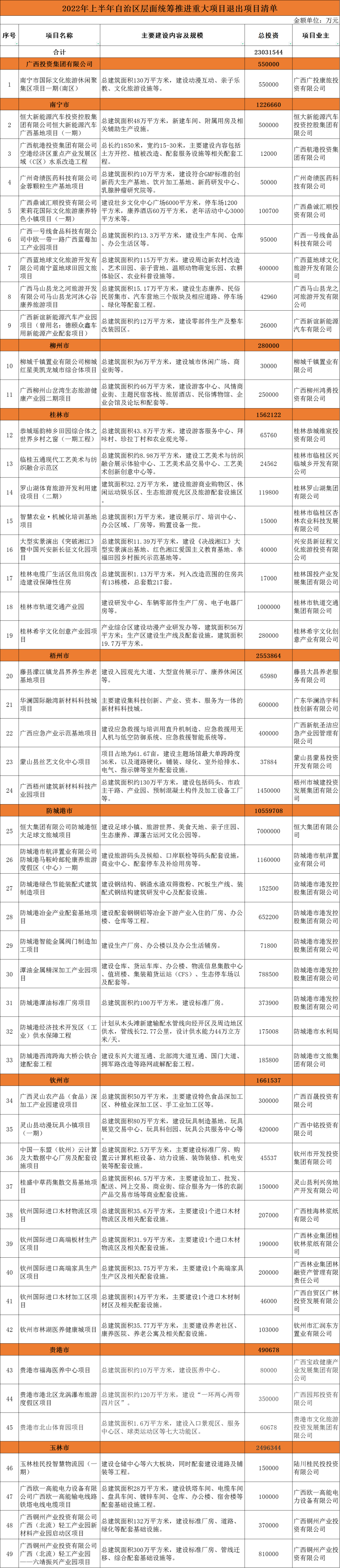 2022年7月8日,廣西壯族自治區重大項目建設推進領導小組辦公室發布