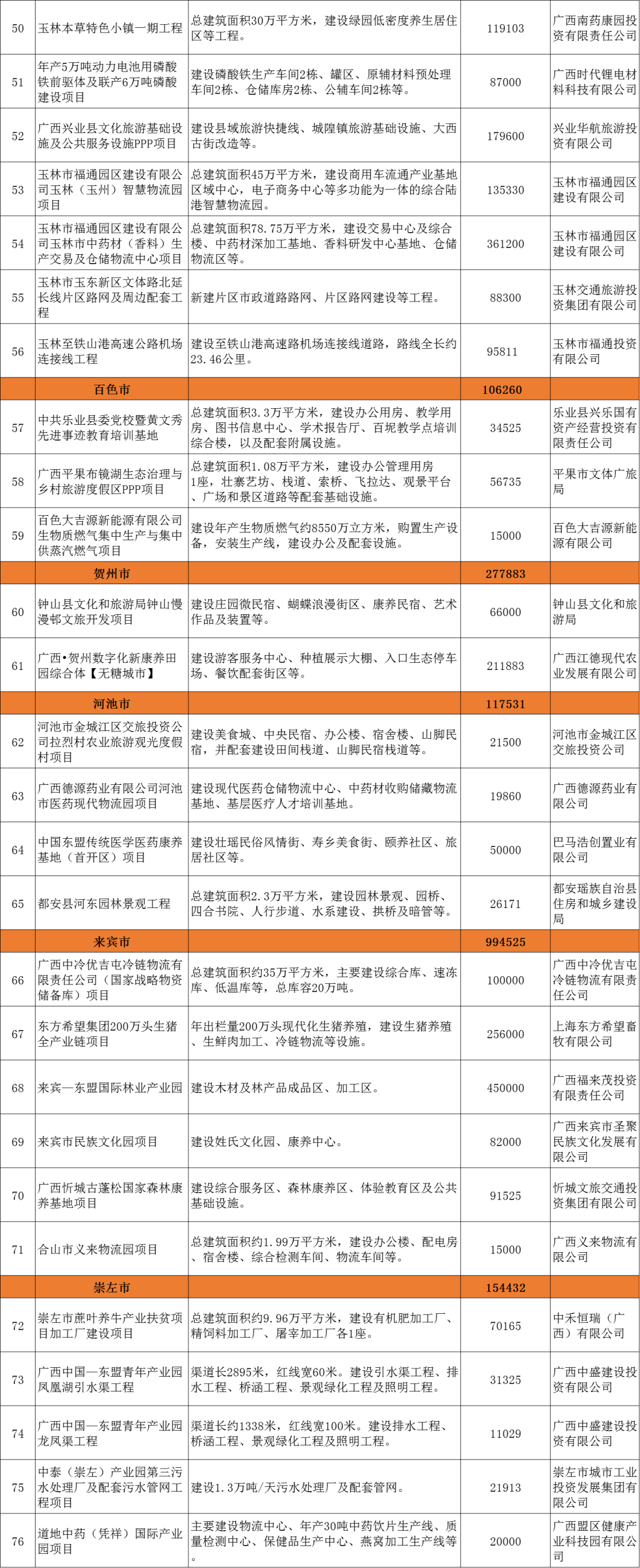 二、廣西鼎誠匯順投資有限公司茉莉花國際文化旅游康養特色小鎮項目(一期)因涉及需整改事項,相關整改要求另行通知。其余退出項目若繼續建設,各有關市(部門)仍需根據單位職能職責繼續做好相關服務工作。